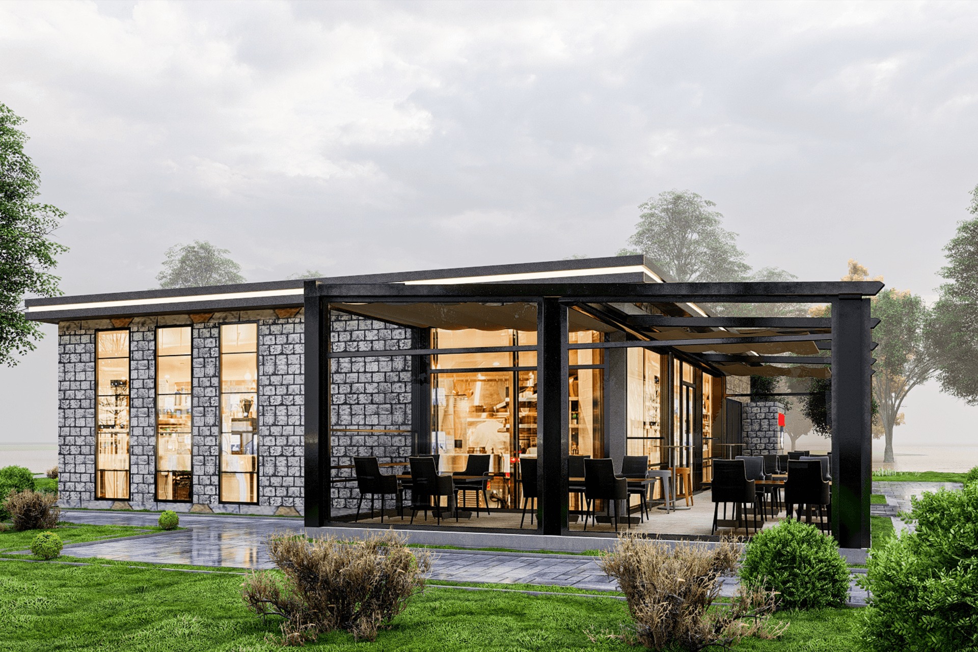 Tesisin tasarımında, bölgenin doğal çevresini koruyarak modern mimari unsurları bir araya getirdik. Geniş pencerelerle donatılmış mekanlar, iç mekanların bol doğal ışık almasını sağlarken, aynı zamanda ziyaretçilere dışarıdaki yeşil manzarayı izleme imkanı sunar. Doğal malzemelerin kullanımı, yapının estetik bir görünüm kazanmasına yardımcı olurken, sıcak ve davetkar bir atmosfer yaratmaktadır.